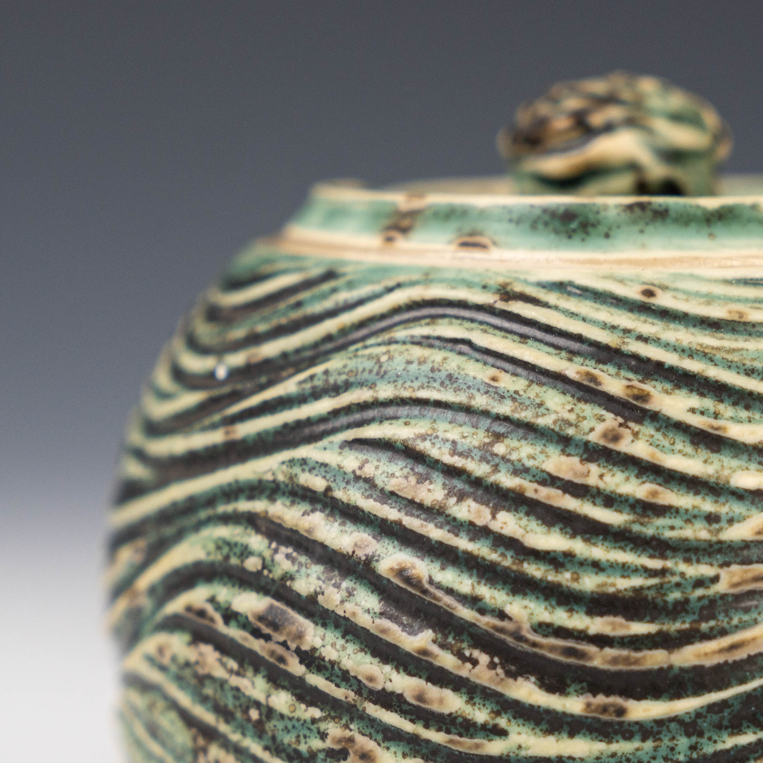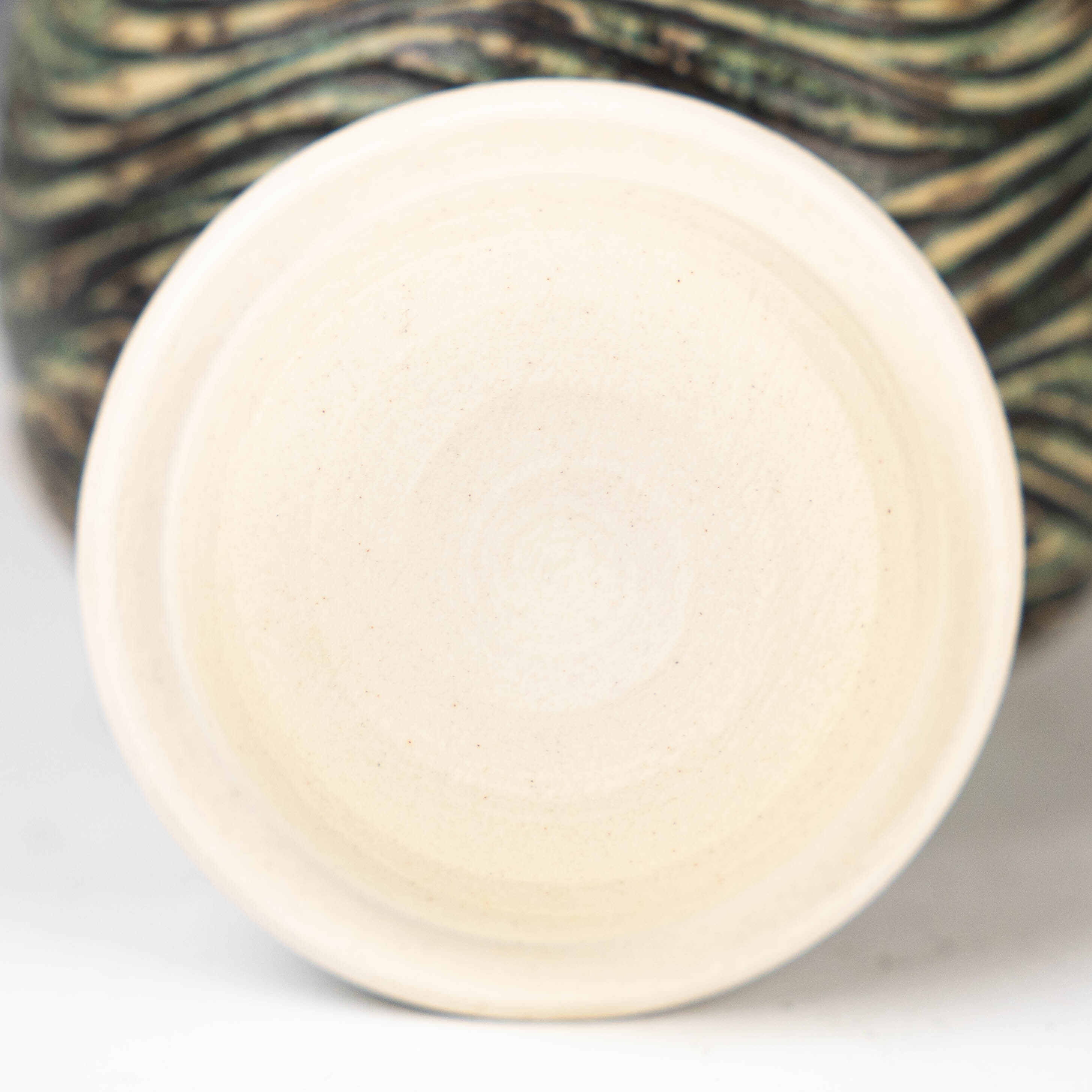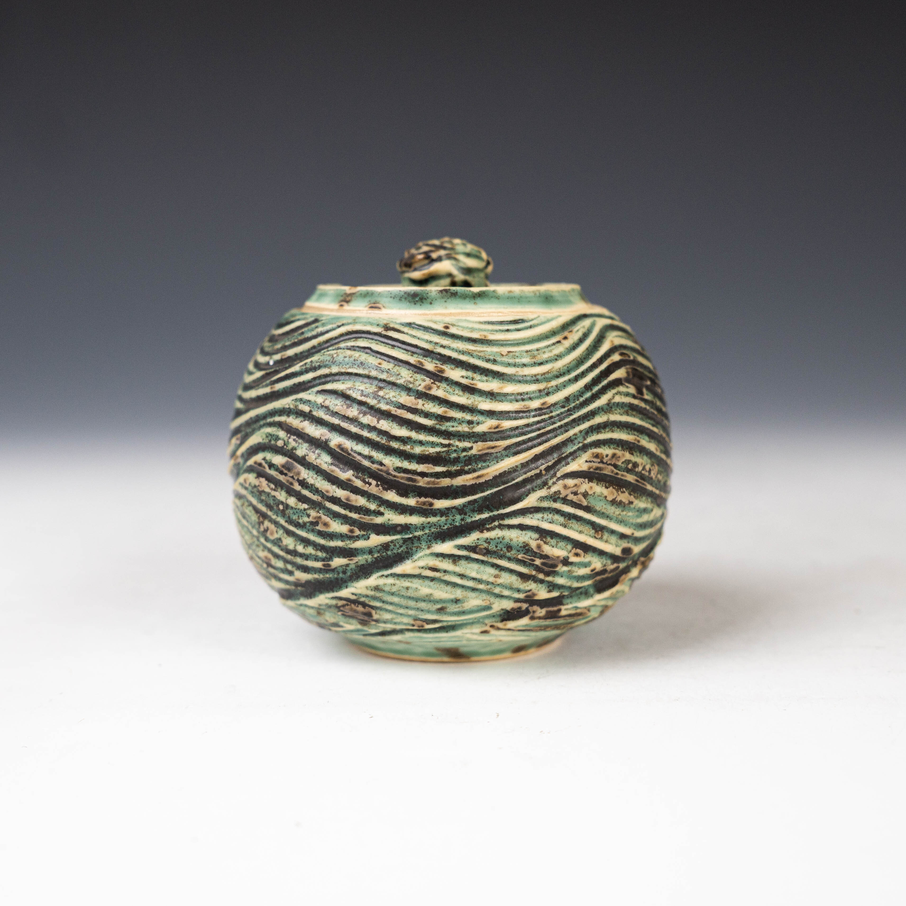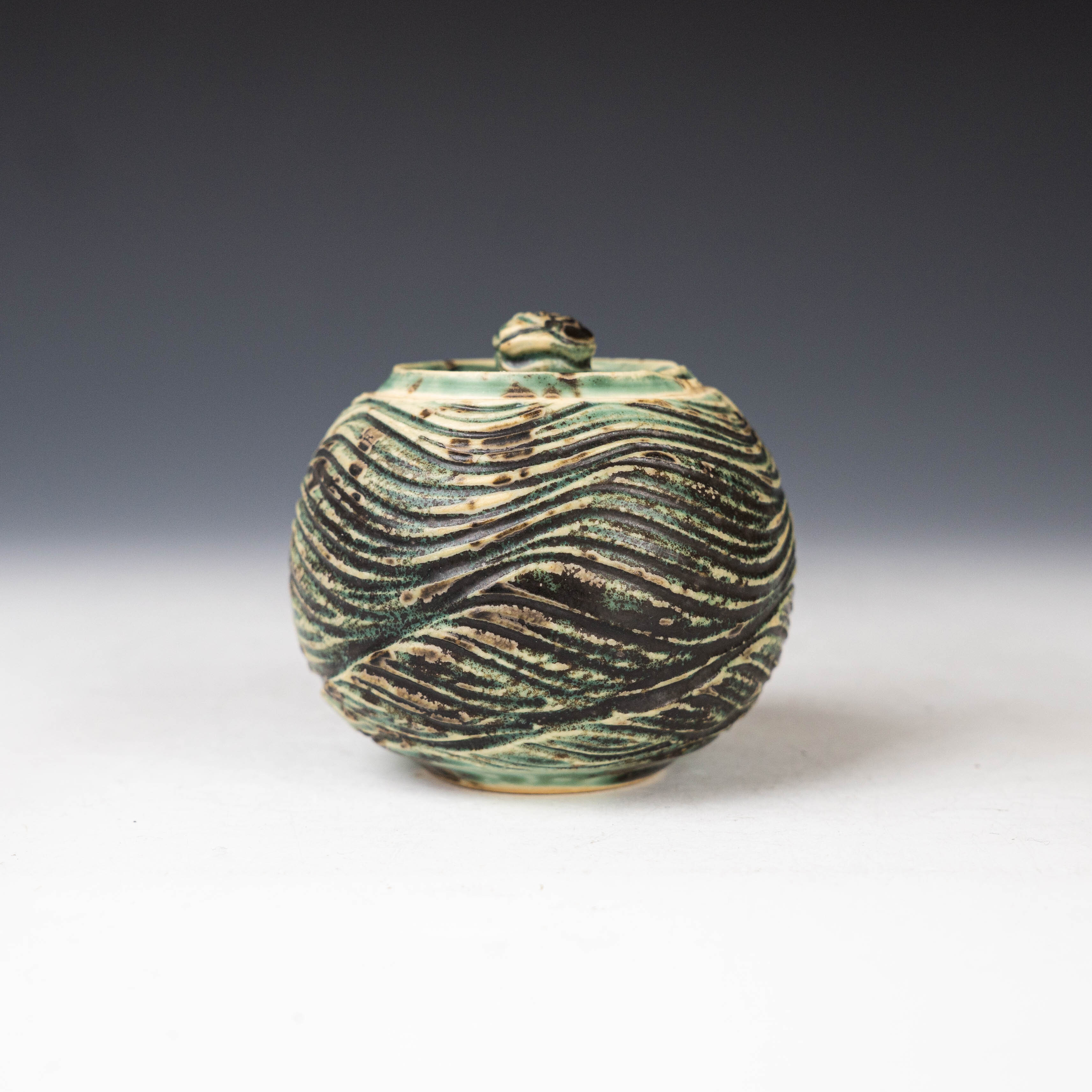 【陳鏡】釉燒|茶倉|織部綠水波紋肌理茶入 CJ00466