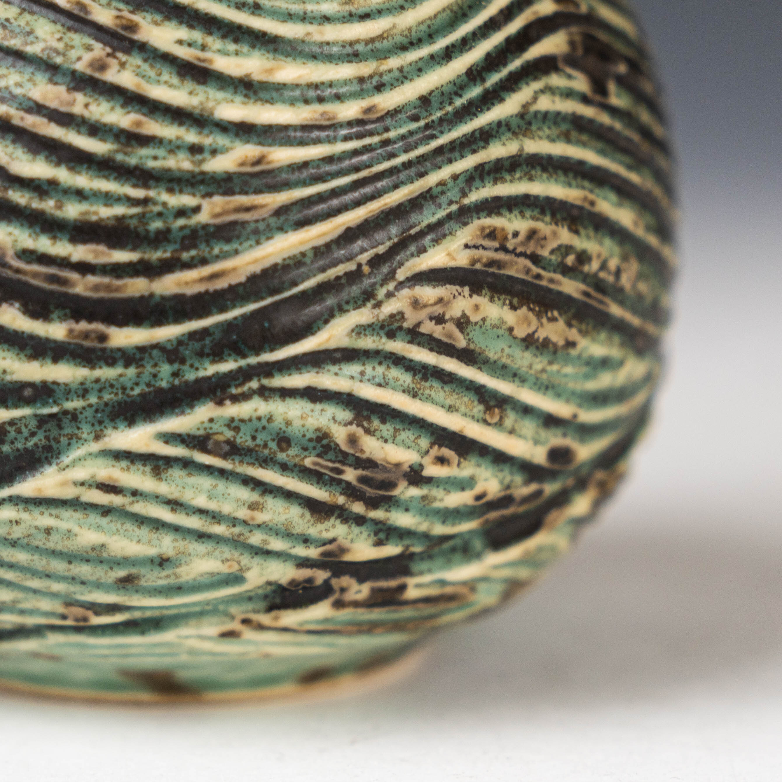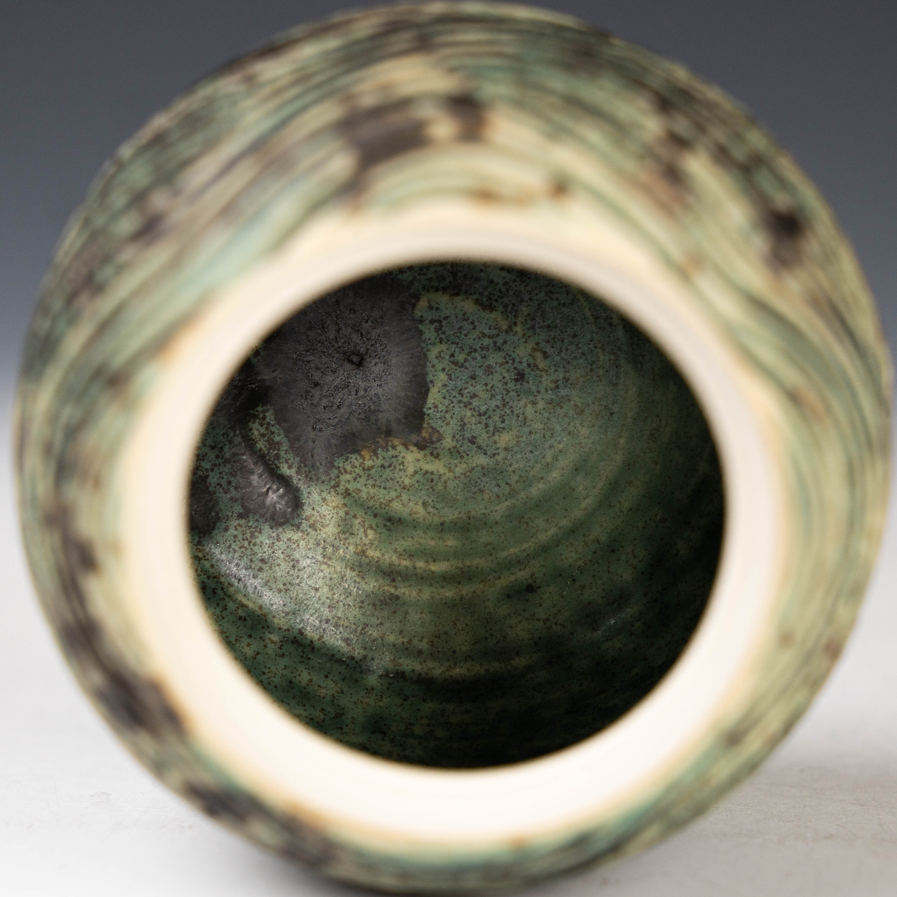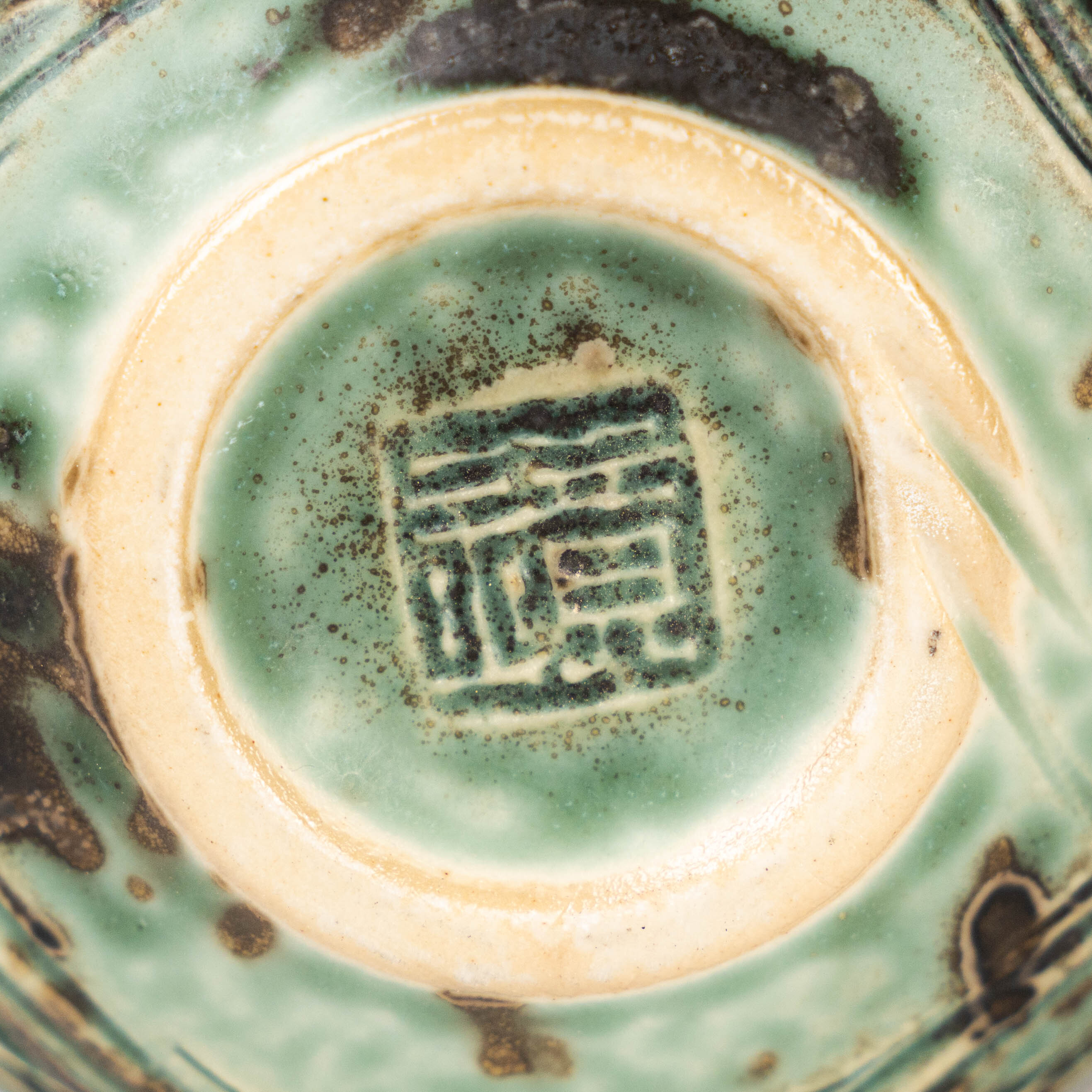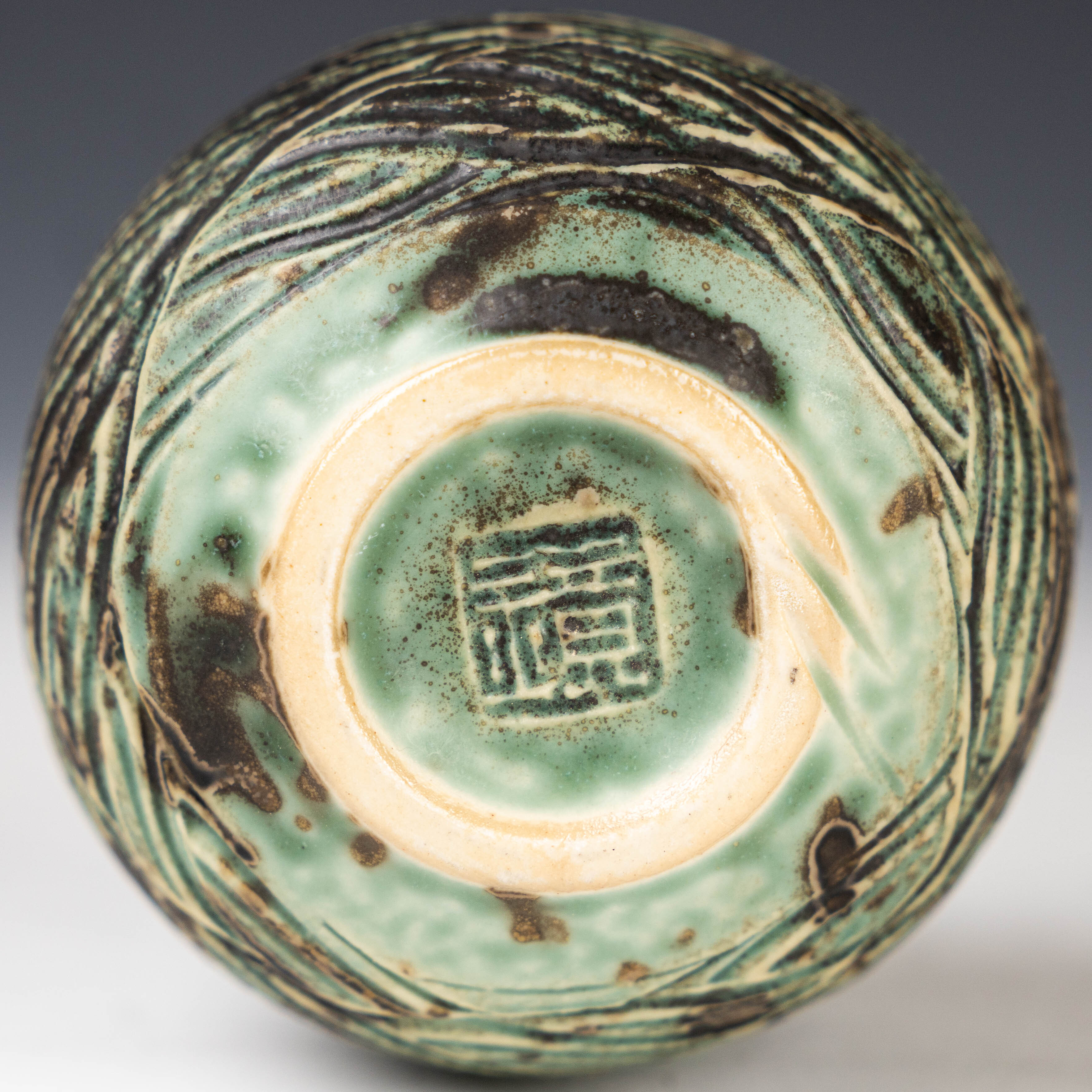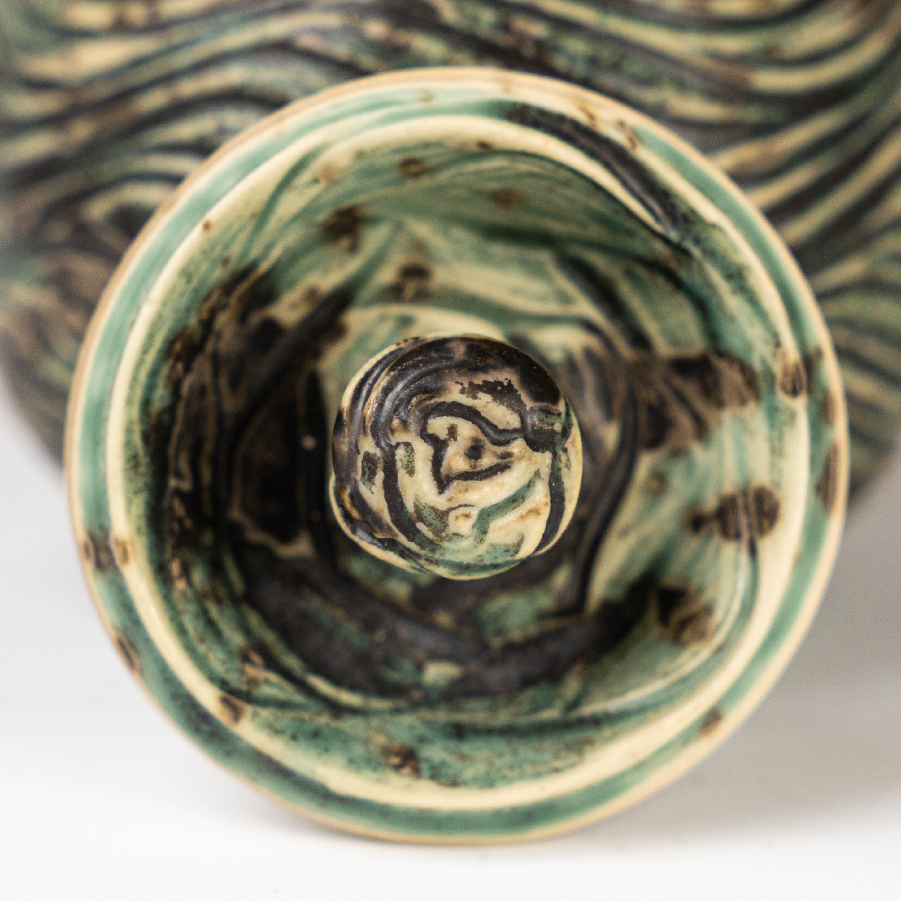 【陳鏡】釉燒|茶倉|織部綠水波紋肌理茶入 CJ00466