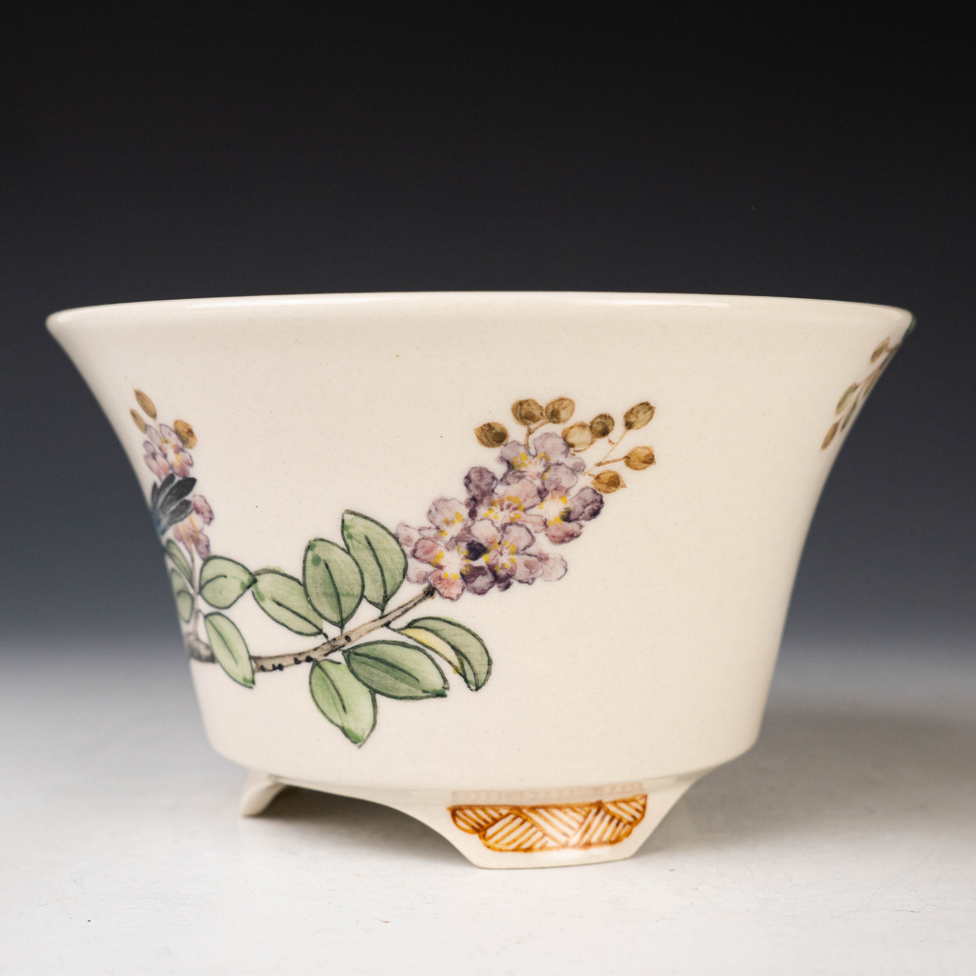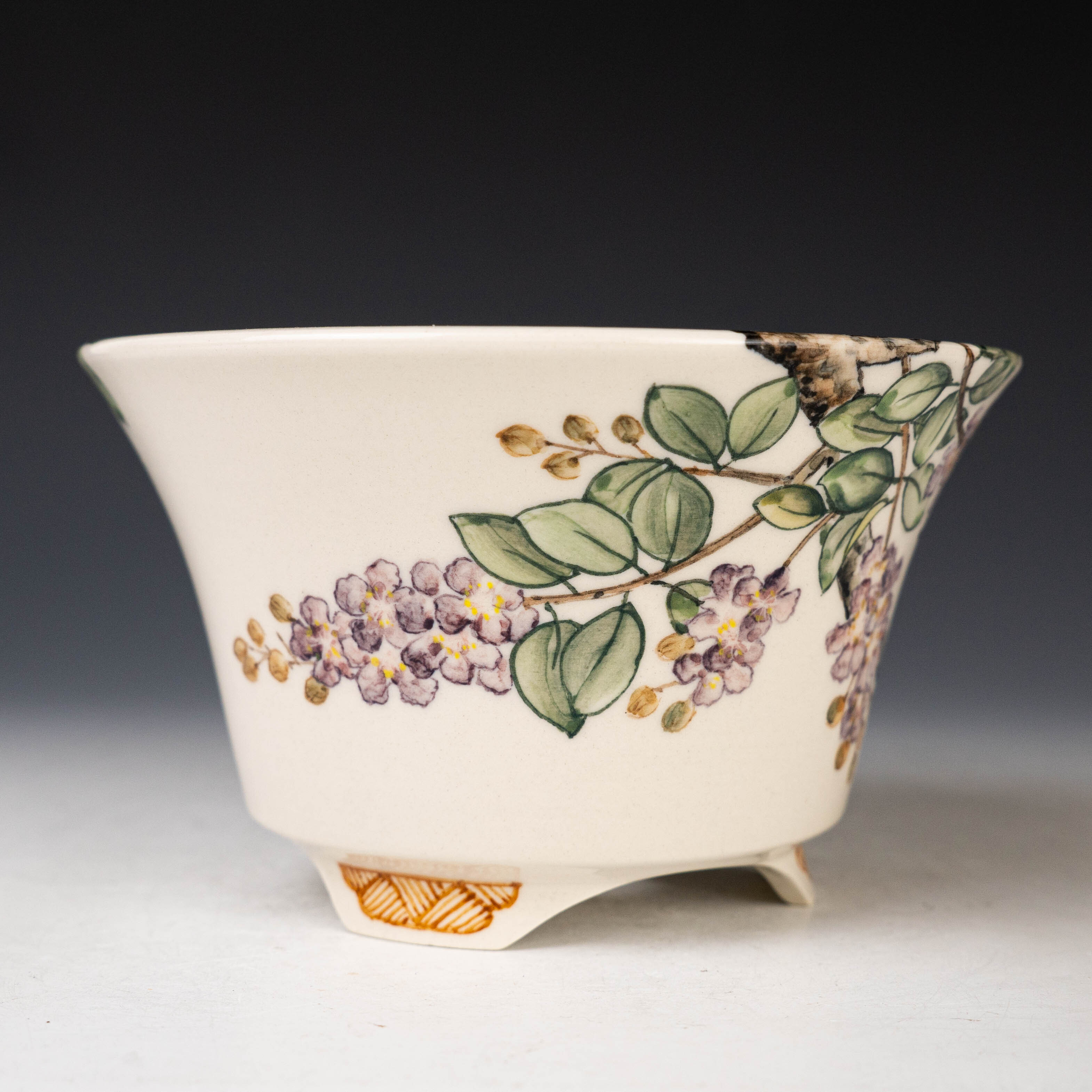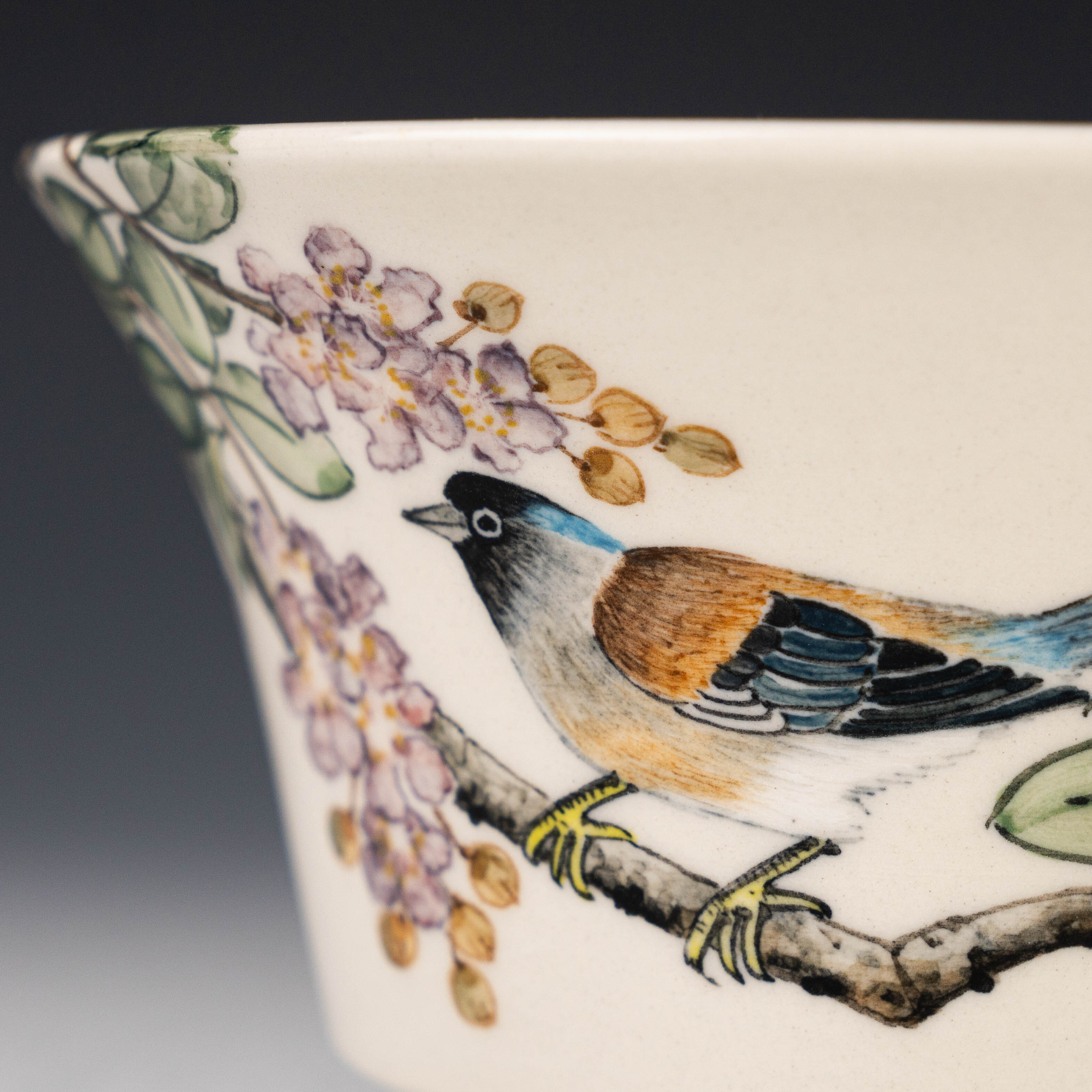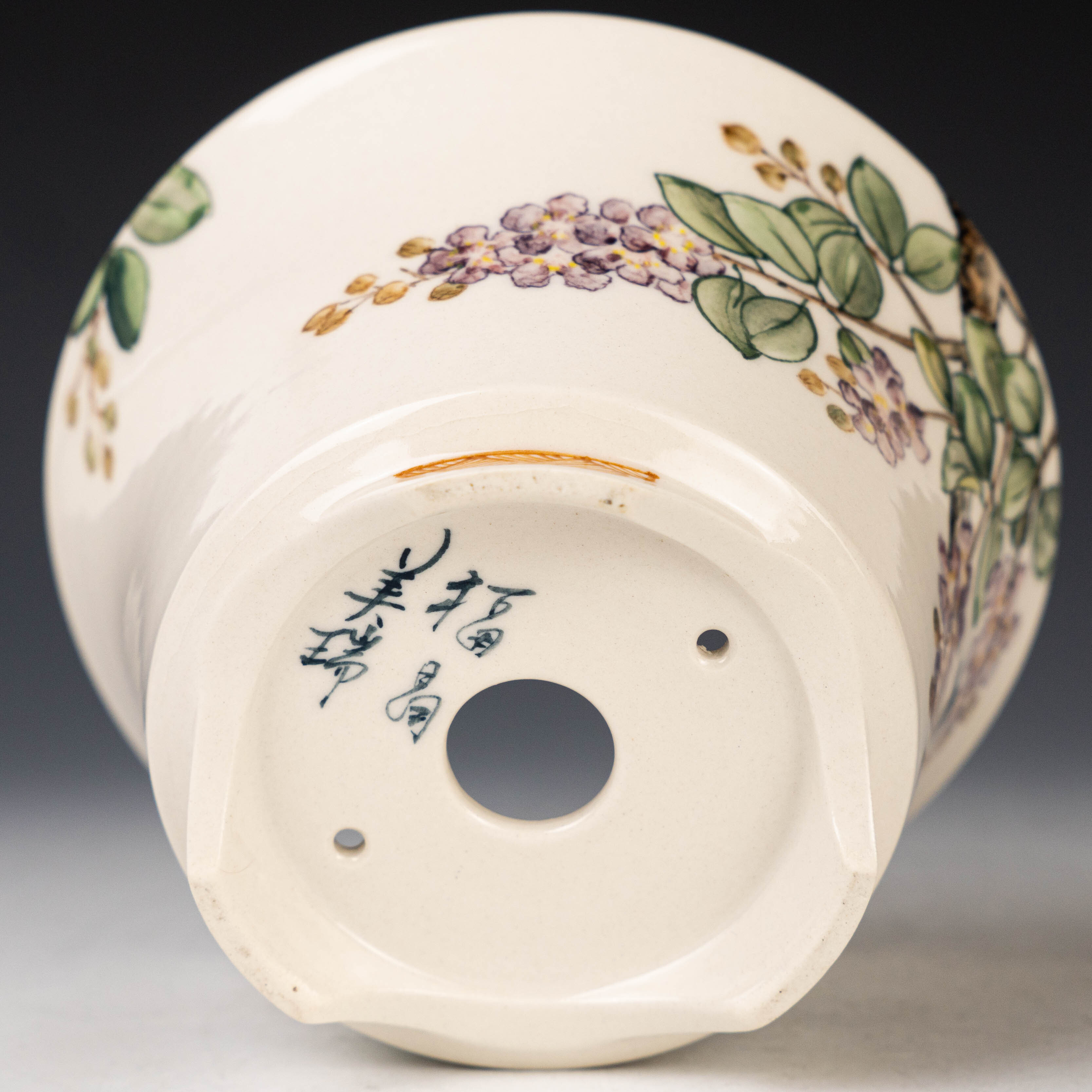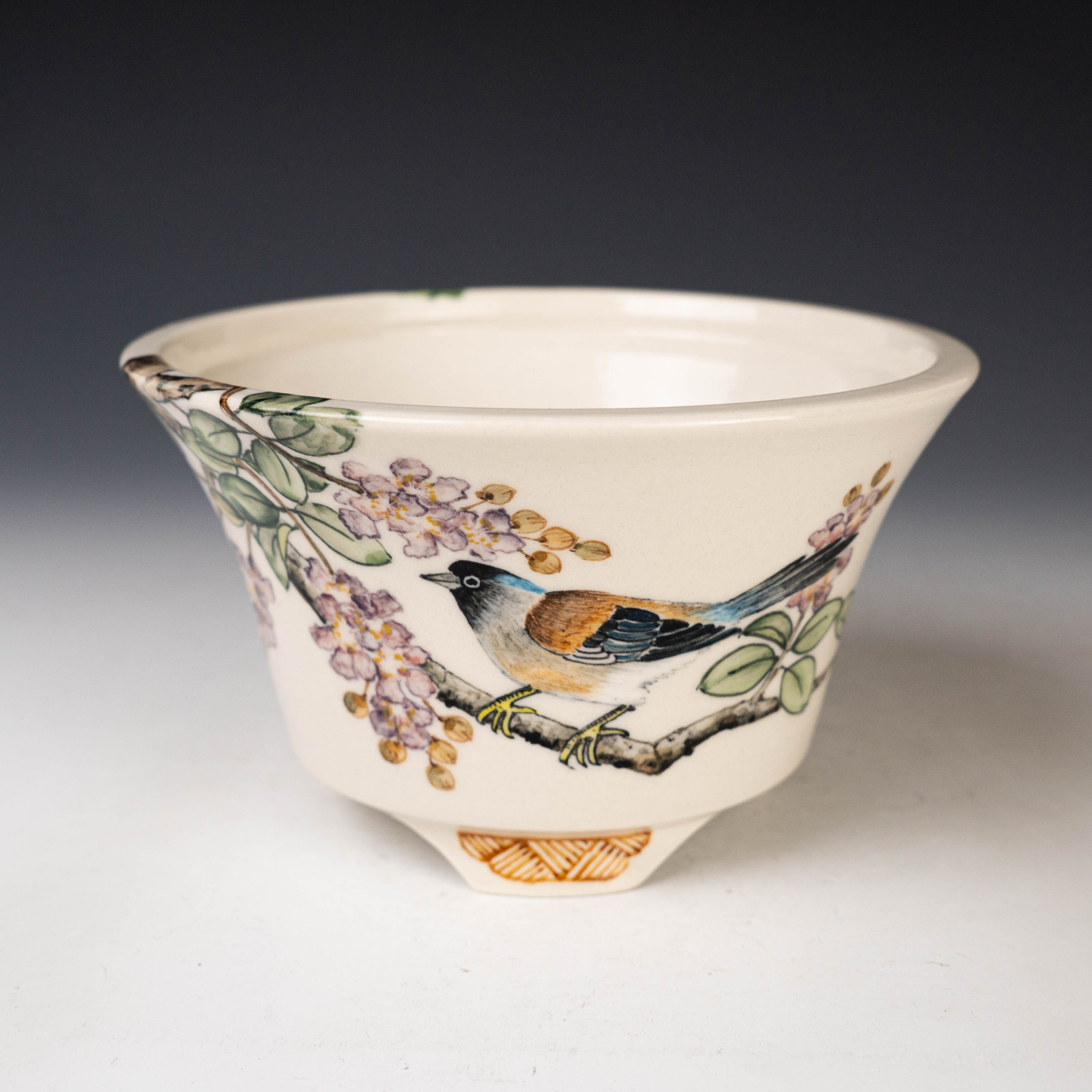 【黃福昌】釉燒|花器|五彩花鳥手繪圓盆 HFC00009